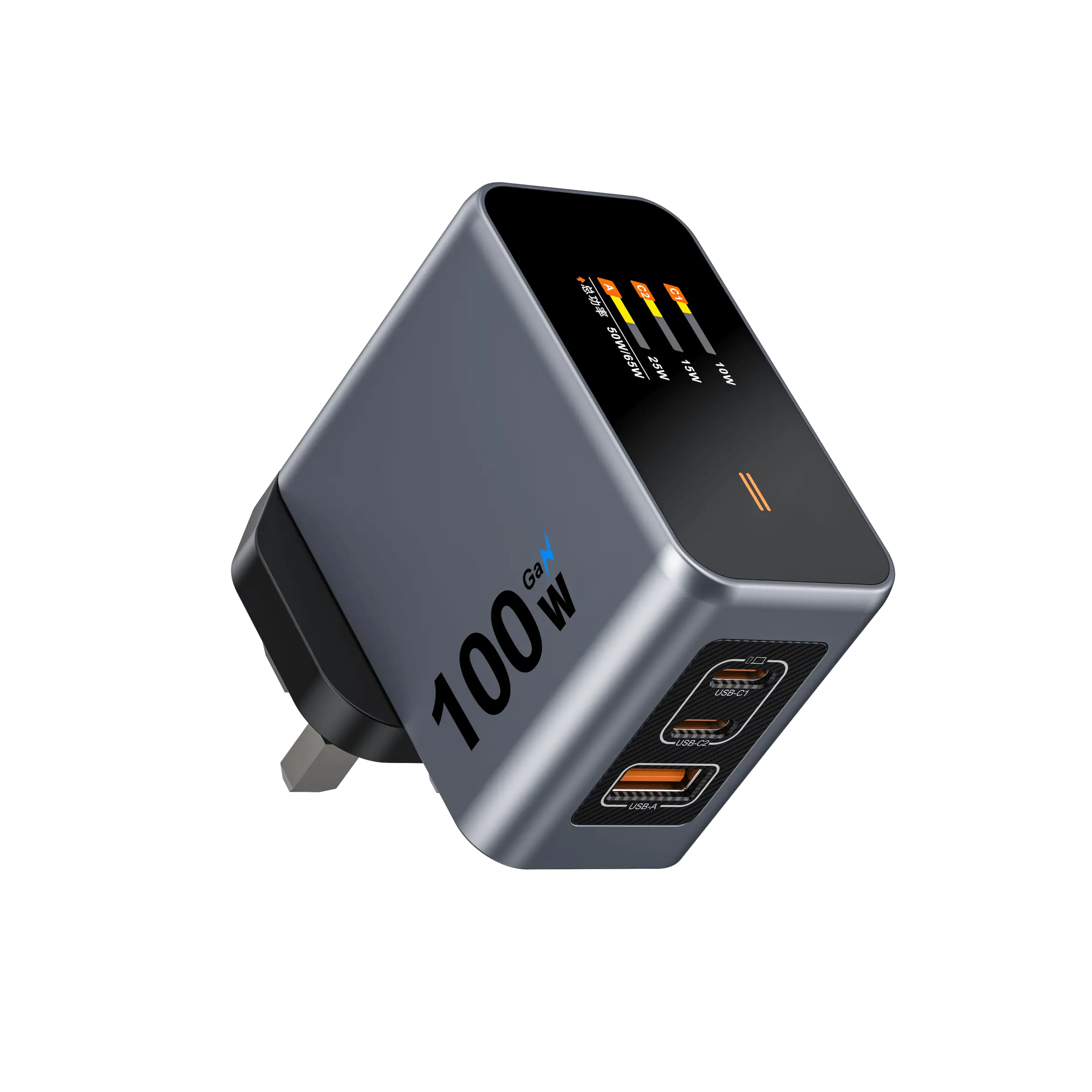 A charger featuring an LCD screen to monitor charging progress, ideal for retail sales and customized branding in international markets.